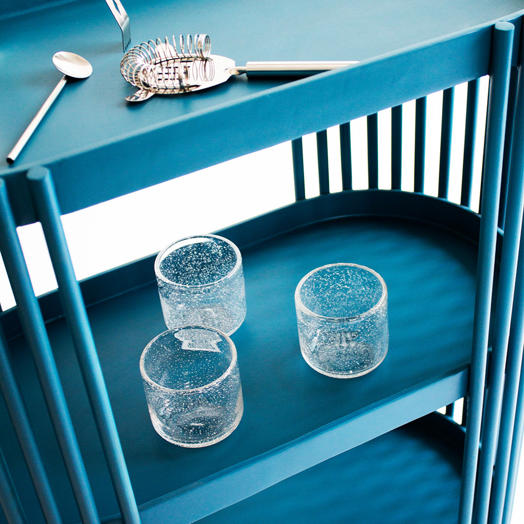Nuestra mesa de vinos morita tiene un diseño sencillo y resistente para colocar tus bebidas.